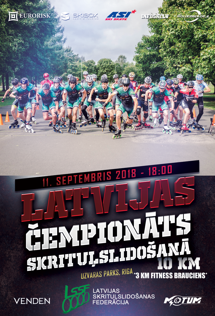 Latvijas skrituļslidošanas čempionāts 10km. distancē notiek Uzvaras parka skrituļslidošanas un distanču slēpošanas trasē, Uzvaras bulvārī 15